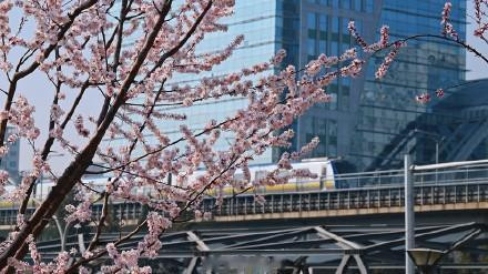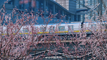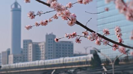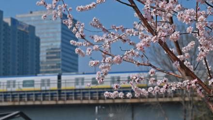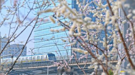 当粉白的山桃花缀满枝端,北京的春天就藏在这趟开往似锦的轻轨里。一边是城市高楼,一边是春日盛景,这是独属于北京的春日马虎。