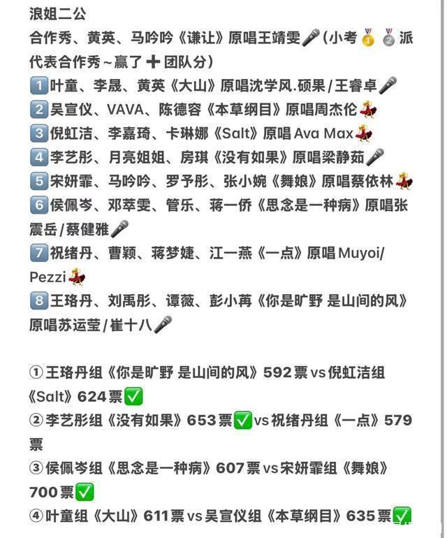 这个是二公的分组和最终的得分情况,名依次一的组合是宋妍霏的组,倒数的是祝绪丹组和王珞丹齐是不及600票,终末亦然她们两个组分袂淘汰了名次过期的一位姐姐,[捂脸]