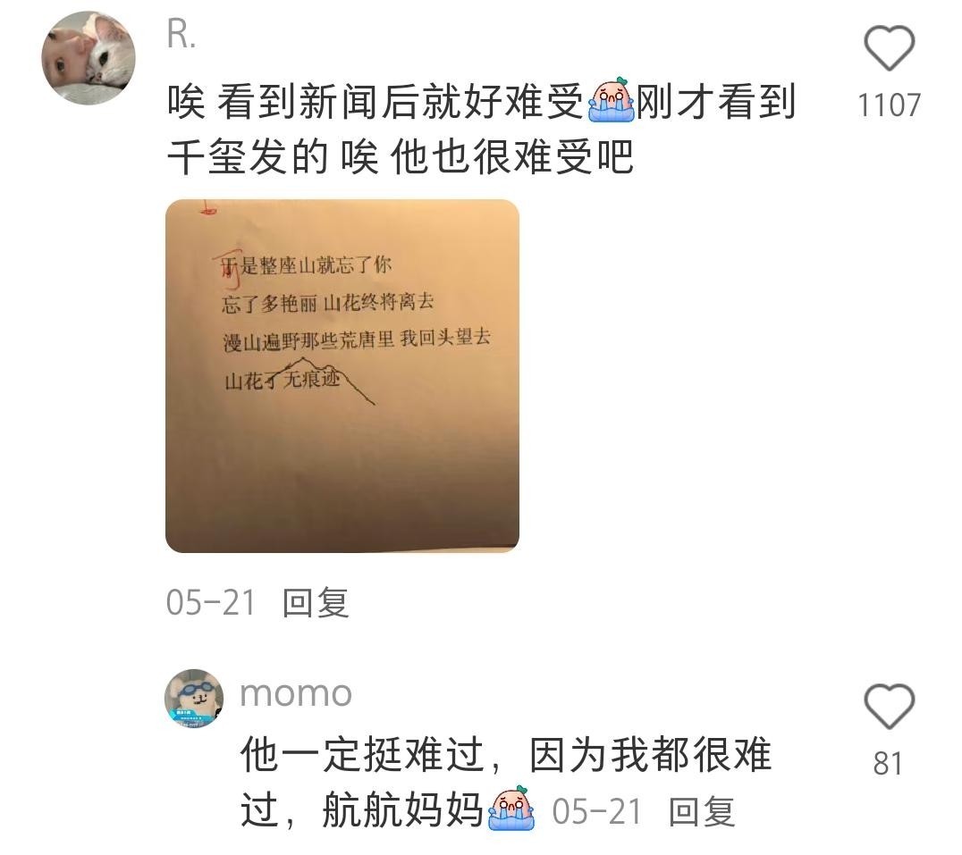5月21日,“韦一航”的脚色账号发布了一条微博,附上一张“陶慧”系围裙的背摄影片,画面温馨而凡俗,配文仅两个字:“姆妈”。