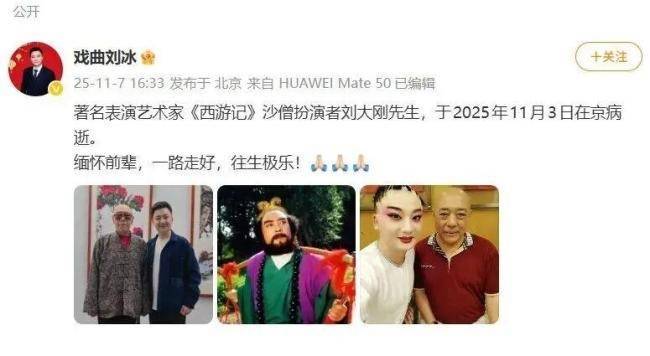 近日,戏曲演员@戏曲刘冰 显现,《西纪行》沙僧演出者刘大刚先生于2025年11月3日在京病逝。刘大刚是国度一级演员,曾在1998年《西纪行续集》中饰演沙僧。这部作品补充了86版《西纪行》缺失部分,所在更丽都,东说念主物更鲜嫩。