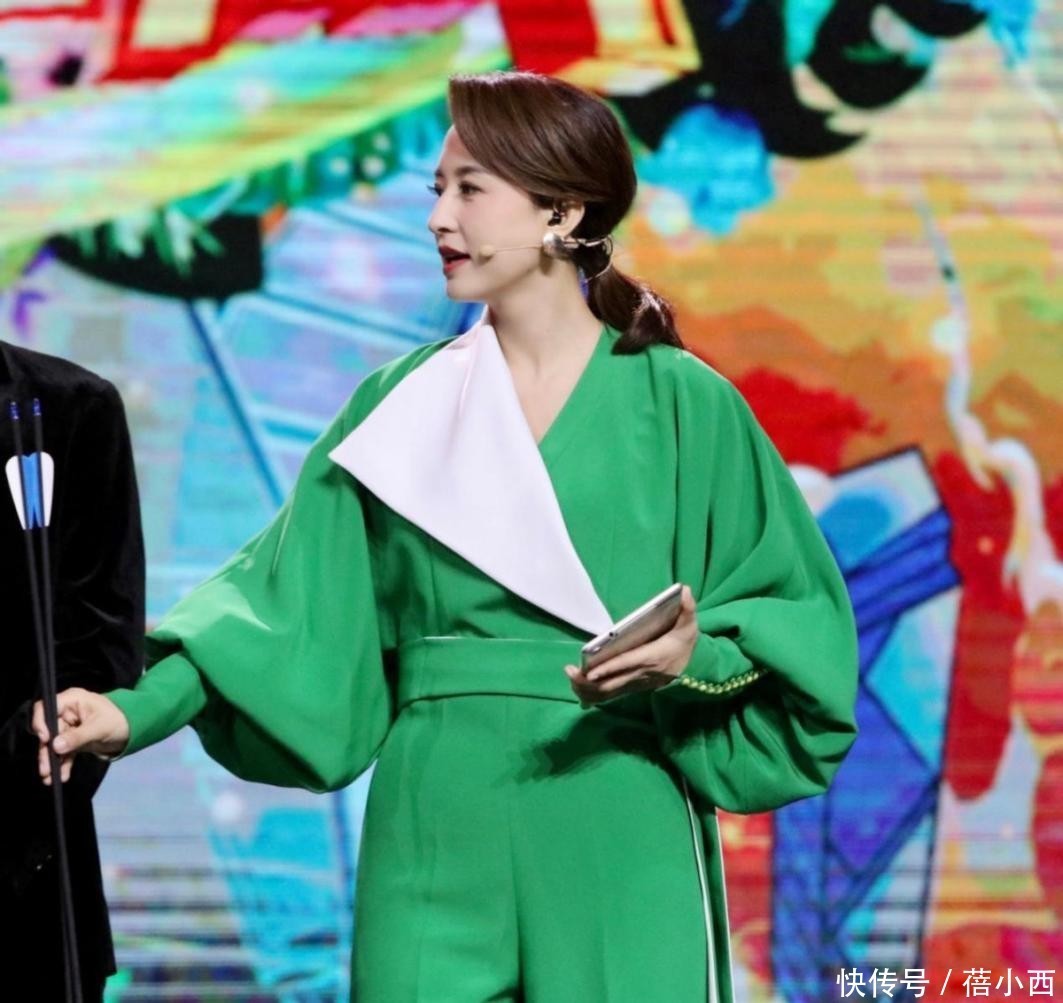 这身绿色穿搭在蓄意上有亮点,但莫得融入复杂的图纹,是以全体看着从简大气。