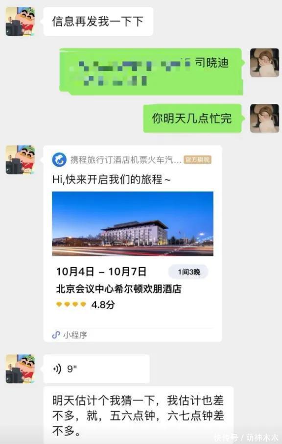 在司晓迪晒出的聊天纪录里,两东说念主从早请安到晚,话语熟稔。不仅温雅对方的游戏技艺,还有订房间这种精巧信息,周奇让司晓迪把个东说念主信息发过来赞理订旅舍,两东说念主还对皆了碰头时刻。