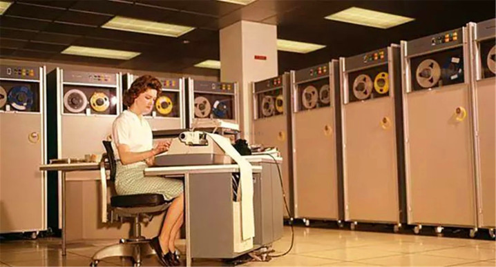 看到这里,咱们也约略廓清这应该是一位年级不小的网友,博士去查了一下,图片中的建树简直是纯粹半个世纪前的电脑,而“圆盘”其实是阿谁时候使用的磁带存储器(magnetic tape storage)。期间越往前,计较机的限制和体型越大,计较才智却越弱;而咱们当今的计较机所占空间越来越小,计较才智则越来越强。