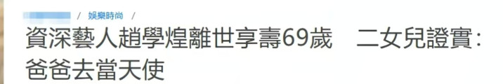 1月10号,港媒曝出悲痛音问🦄aj九游会官网【极速线路】进入【欧洲杯官方合作网站】华人市场最大的线上娱乐服务供应商,资深演员赵学煌因病物化,享年69岁。