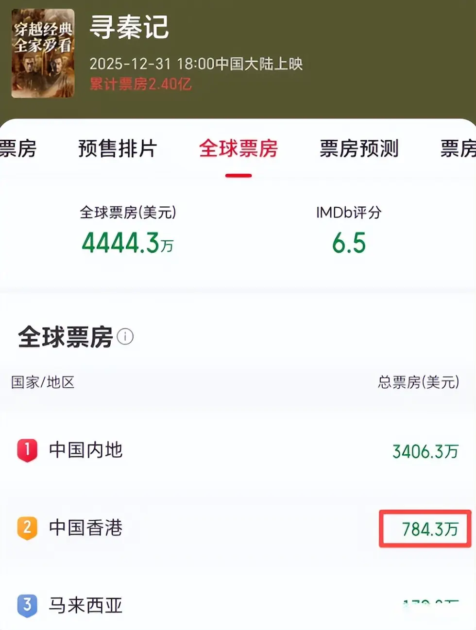 不外,虽说古天乐主演的《寻秦记》在内地的票房发达很一般,但此片在中国香港原土如故很受接待。不到半个月,《寻秦记》的香港总票房就跳动了《哪吒2》,并且就算是詹姆斯卡梅隆合手导的好莱坞大片《阿凡达3》也远不是其敌手。