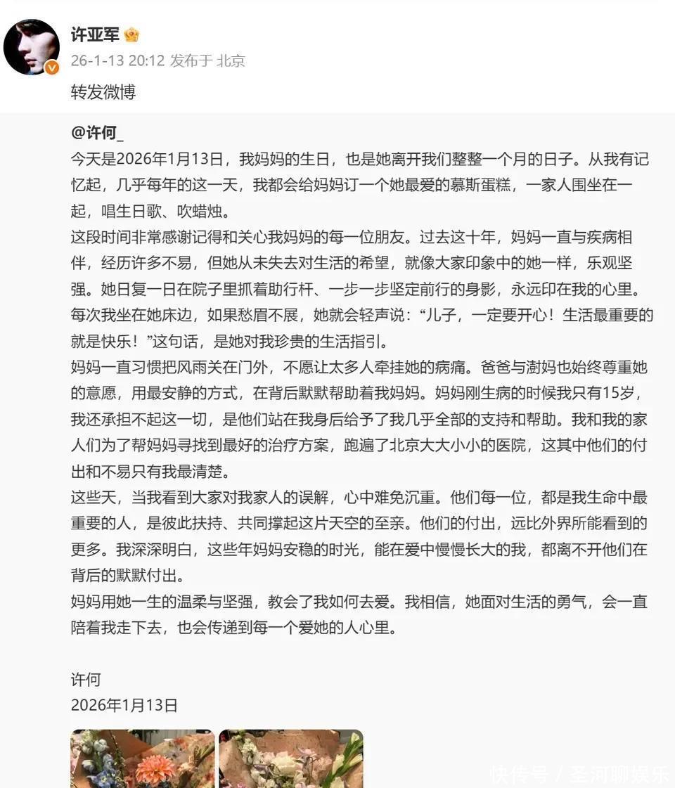 这篇长文不仅是对母亲的风雅,亦然一次对家东说念主的见原狡辩。许何超越提到,濒临外界的一些诬蔑,他必须说出实情:在母亲患病的漫长岁月里,他的父亲许亚军和继母张澍长期用最欣慰的方式在背后沉默复旧。