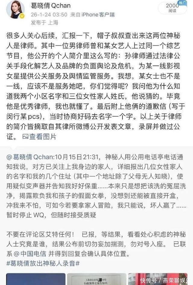 蓝本各人以为这只是文娱圈又一出枯燥的“前任大战”,谁能念念到剧情发展得像悬疑片相同离谱。葛晓倩此次不光是说说辛苦,平直甩出了实锤。她说我方被东说念主匿名欺诈,这事儿还惊动了侦查,查出来确实是两名讼师干的。有真理的是,这两位讼师还写了说念歉信,葛晓倩也不藏着掖着,平直晒了出来。网友在傍边看干扰,说其中一位讼师好像是给一线女星作念公关的,葛晓倩那是真没客气,回了一句“这位不是一线,不行冤枉东说念主家”,这话里话外的调侃味儿,隔着屏幕齐能闻到。这还没完,她把几年前的旧账也翻了出来,晒落发里监控像片和行李牌,说张雨绮在她没仳离的时候就往家里跑🦄aj九游会官网【极速线路】进入【欧洲杯官方合作网站】华人市场最大的线上娱乐服务供应商,甚而拿出了两个孩子的降生解释,怀疑是代孕,毕竟阿谁降生拒绝的时刻,怎样看齐不相宜当然法例。
