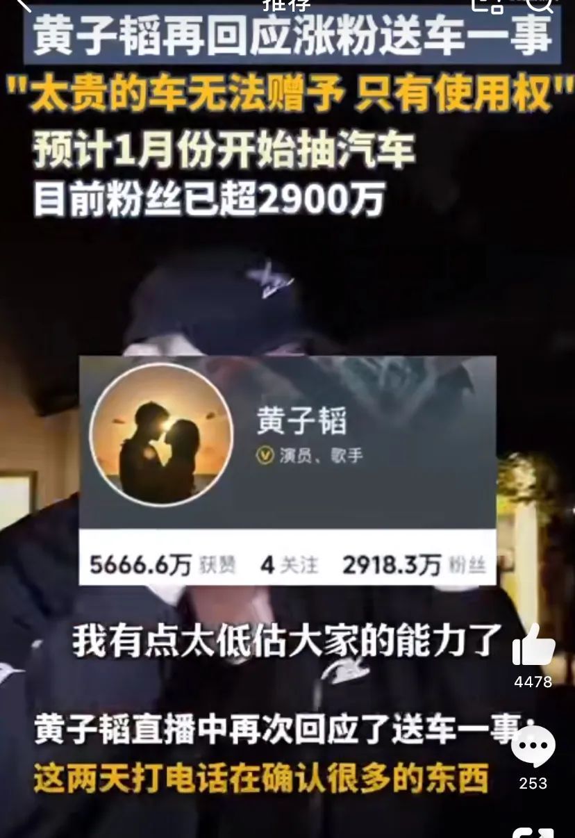黄子韬会玩,涨粉也跟玩相似,不得不感触这年初明星更容易火起来,即使没戏拍,没事作念,直播亦然个赛说念,还比拍戏粗犷肤浅。