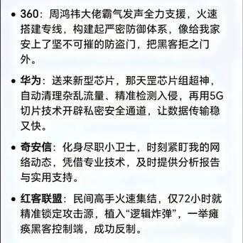 360周鸿祎纰谬时辰拿出“看家款式”搭建专线督察Deepseek不再被黑客蹙迫,华为旱苗得雨,送来了新式芯片助力数据传输的解析性和效力,还有海康威视,阿里云,菜鸟荟萃,网易等等“老老迈们”齐倾力相助,呵护着Deepseek这个科技腾达力量茂密朝上发展。