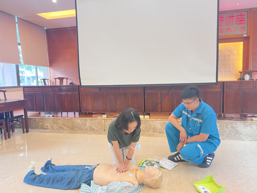 讲座上,来自番禺区第五东谈主民病院的吴医师以下里巴人的谈话,结合本色案例,对热射病的调治、海姆立克救治法的愚弄、心肺复苏的表面和操作、简便AED的使用等常见急救常识和手段进行西宾,并珍摄强调在靠近突发伏击情况时,保持摧毁、赶快收受正确急救措施的要害真理真理。
