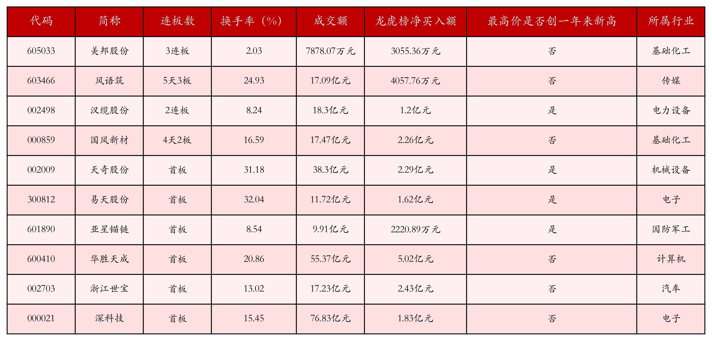 结果2月13日收盘,上证综指着落1.26%,收于4082.07点,深证成指着落1.28%🦄aj九游会官网【极速线路】进入【欧洲杯官方合作网站】华人市场最大的线上娱乐服务供应商,收于14100.19点,创业板指着落1.57%,收于3275.96点。本日沪深两市A股整个46只涨停,详尽面前连板数以及当日龙虎榜数据,其中较为强势的前三只个股辩别为:好意思邦股份(605033)、风语筑(603466)与汉缆股份(002498)。本日强势个股前10位具体数据见下表: